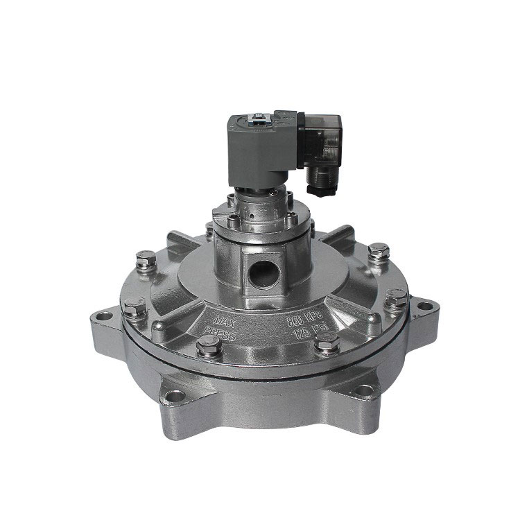 Jeho charakteristikou je, že vstupní a výstupní potrubí vzduchu pravoúhlého ventilu svírá úhel 90°. Těleso ventilu a víko jsou tlakově lité z hliníkové slitiny. Po povrchové úpravě vykazují vynikající odolnost proti korozi. Membrána a těsnění jsou vyrobeny vulkanizovaným kompozitním postupem. Suroviny pro elektromagnetickou pilotní hlavu se skládají z vysoce účinných magnetických materiálů a materiálů magnetického stínění z nerezové oceli. Kritické součásti, jako jsou pružiny a upevňovací prvky, jsou vyrobeny z nerezové oceli. Způsob připojení: Trubka rozdělovače vzduchu (vzduchový zásobník) a foukací trubka sběrače prachu jsou vloženy do vstupu a výstupu ventilu, utěsněné na obou koncích přítlačnými maticemi.